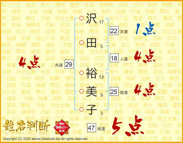 沢田裕美子さんの総運は47画の5点!