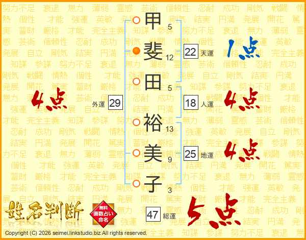 甲斐田裕美子さんの総運は47画の5点!
