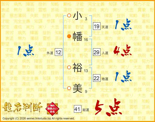 小(3画)幡(16画) 裕(13画)美(9画)