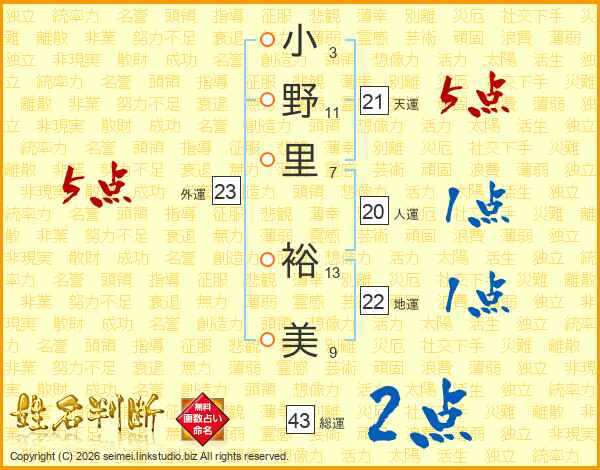 小野里裕美さんの総運は43画の2点!