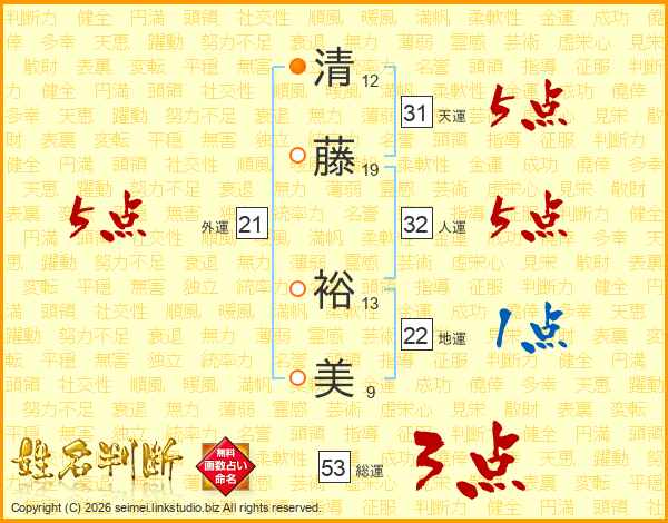 清(12画)藤(19画) 裕(13画)美(9画)