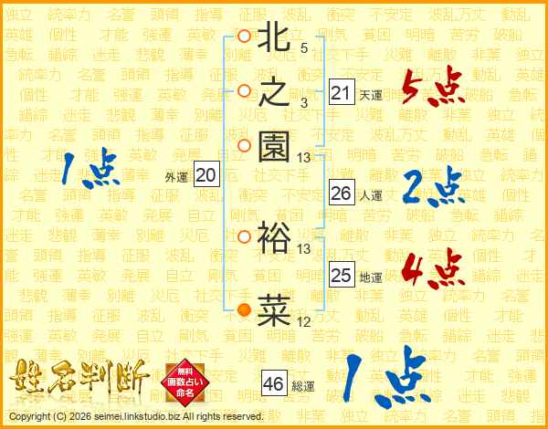 北之園裕菜さんの総運は46画の1点!