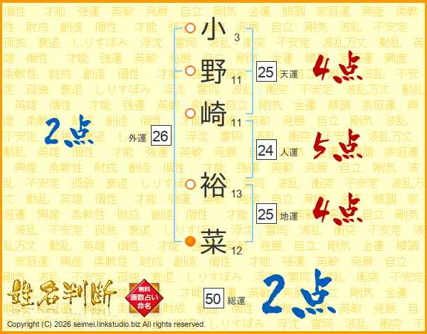 小野崎裕菜さんの地運は25画の4点!