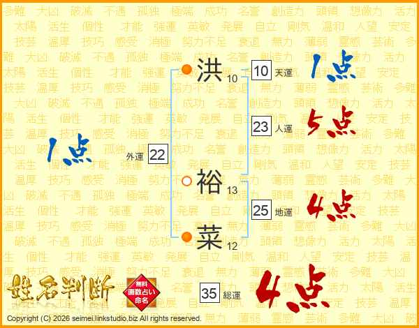 洪裕菜さんの地運は25画の4点!