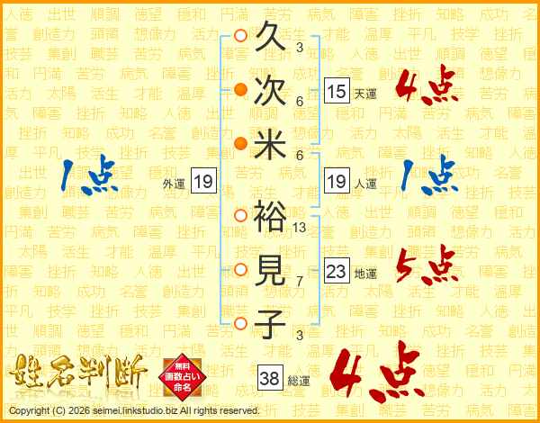 久(3画)次(6画)米(6画) 裕(13画)見(7画)子(3画)