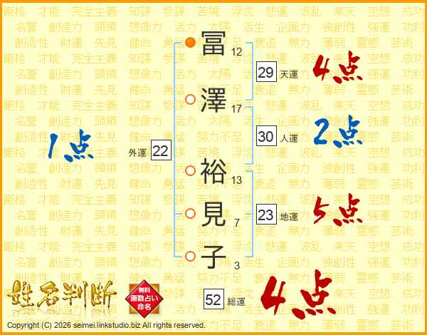 冨(12画)澤(17画) 裕(13画)見(7画)子(3画)