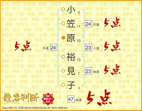 小笠原裕見子さんの総運は47画の5点!