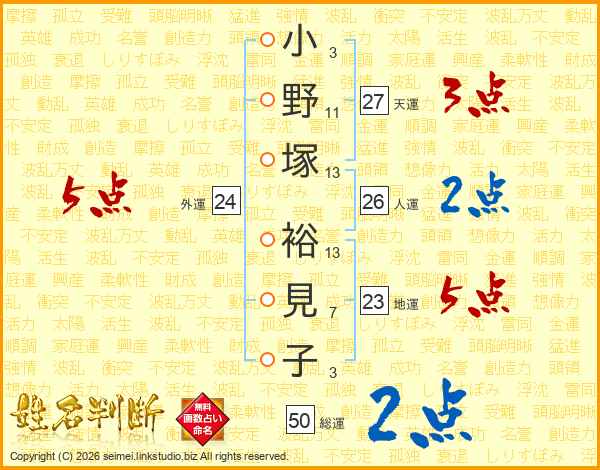 小野塚裕見子さんの外運は24画の5点!
