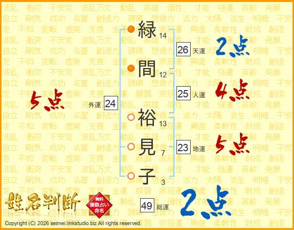 緑間裕見子さんの総運は49画の2点!