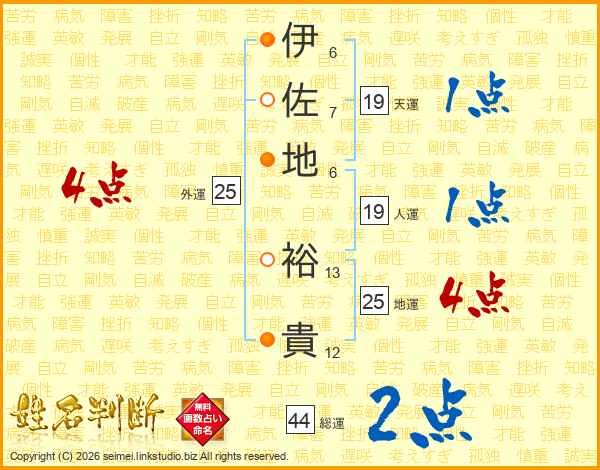 伊佐地裕貴さんの総運は44画の2点!
