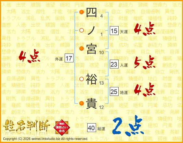 四ノ宮裕貴さんの総運は40画の2点!