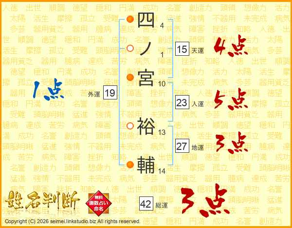 四ノ宮裕輔さんの総運は42画の3点!