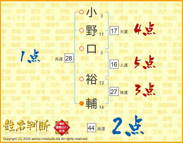小野口裕輔さんの総運は44画の2点!