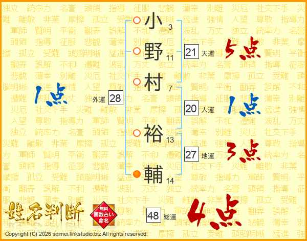 小野村裕輔さんの総運は48画の4点!