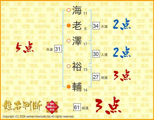 海老澤裕輔さんの天運は34画の2点!