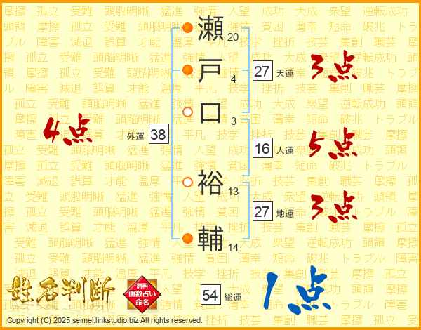 瀬(20画)戸(4画)口(3画) 裕(13画)輔(14画)