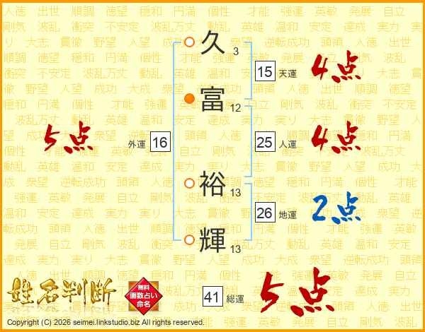 久富裕輝さんの人運は25画の4点!