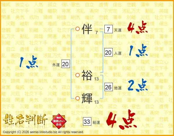 伴裕輝さんの総運は33画の4点!