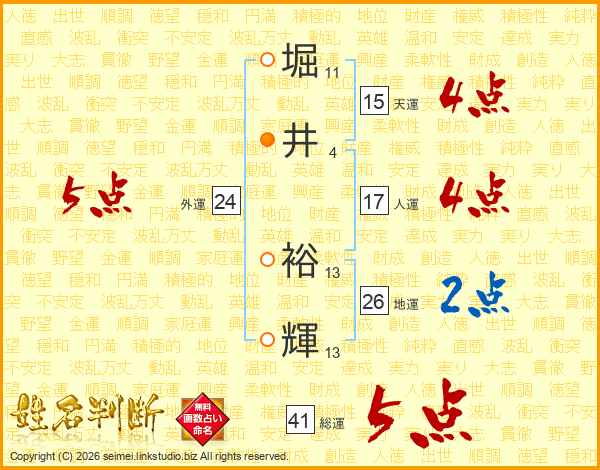 堀井裕輝さんの天運は15画の4点!