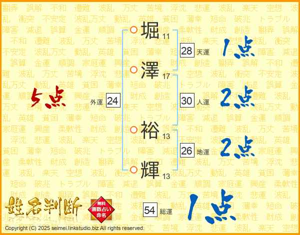 堀(11画)澤(17画) 裕(13画)輝(13画)