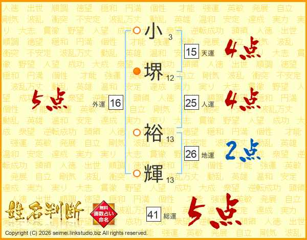 小堺裕輝さんの総運は41画の5点!