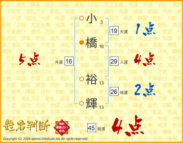 小橋裕輝さんの総運は45画の4点!