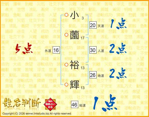 小(3画)薗(17画) 裕(13画)輝(13画)