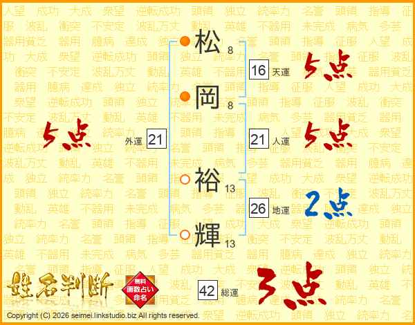 松岡裕輝さんの人運は21画の5点!