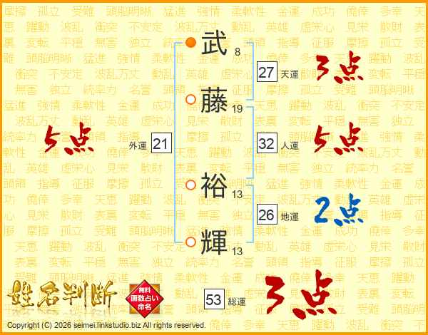 武藤裕輝さんの総運は53画の3点!