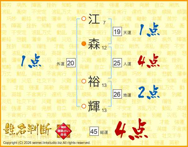 江森裕輝さんの総運は45画の4点!