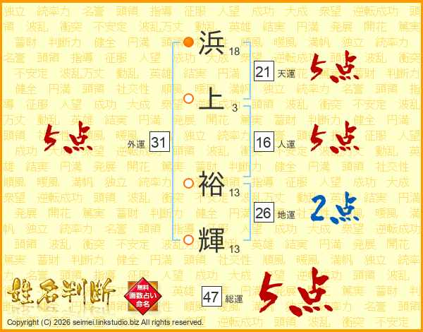 浜上裕輝さんの総運は47画の5点!