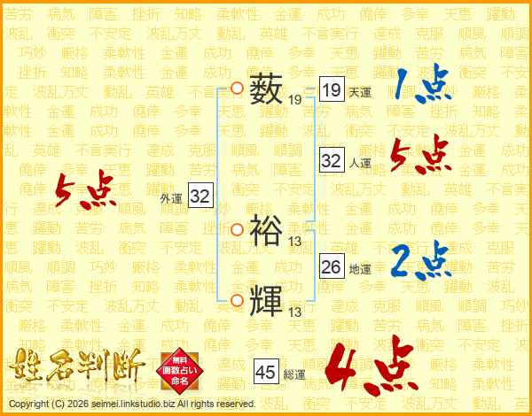 薮裕輝さんの総運は45画の4点!