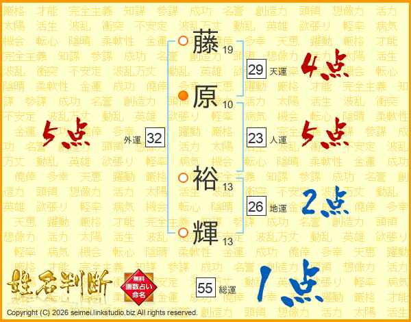 藤原裕輝さんの外運は32画の5点!