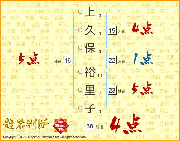 上久保裕里子さんの外運は16画の5点!