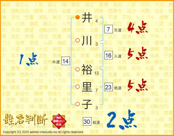 井(4画)川(3画) 裕(13画)里(7画)子(3画)