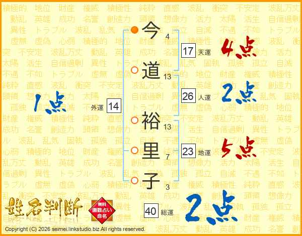 今道裕里子さんの総運は40画の2点!