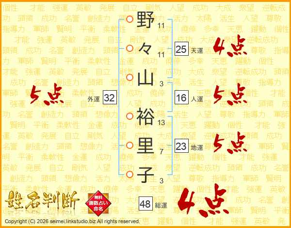 野々山裕里子さんの外運は32画の5点!