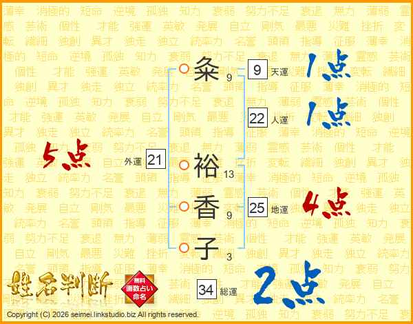 粂裕香子さんの総運は34画の2点!