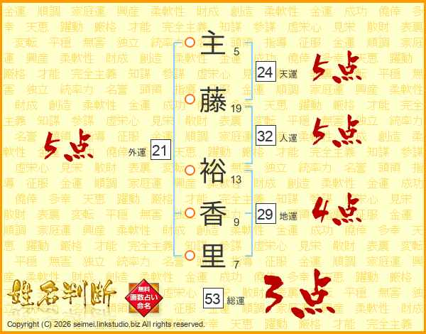 主藤裕香里さんの総運は53画の3点!