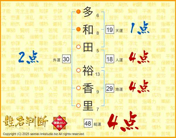 多和田裕香里さんの総運は48画の4点!