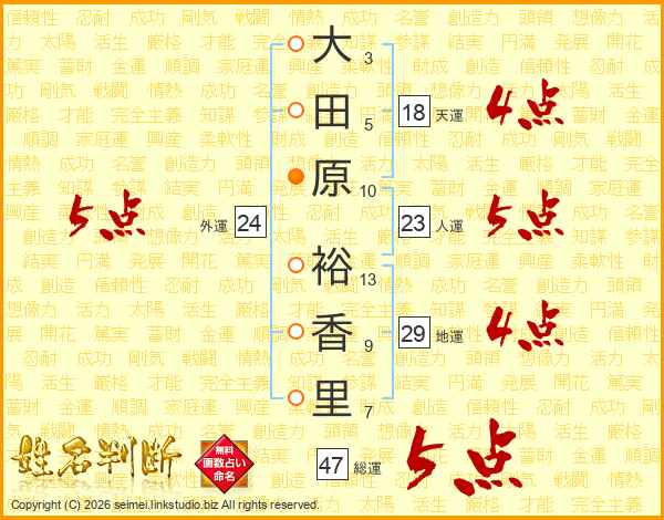 大田原裕香里さんの総運は47画の5点!