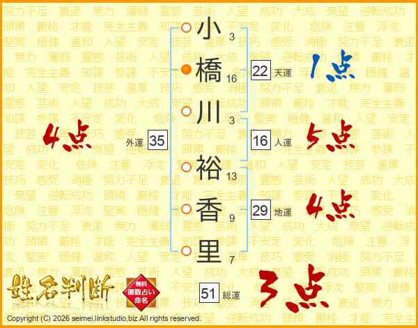 小橋川裕香里さんの総運は51画の3点!