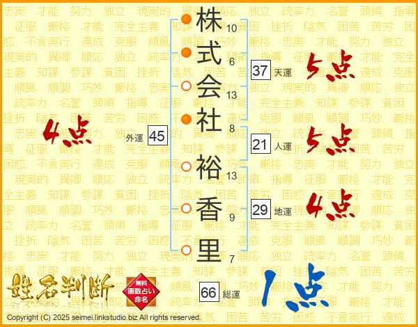 株(10画)式(6画)会(13画)社(8画) 裕(13画)香(9画)里(7画)