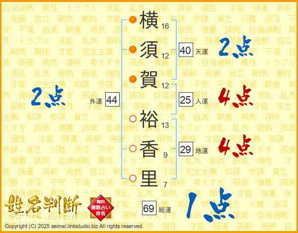 横須賀裕香里さんの外運は44画の2点!