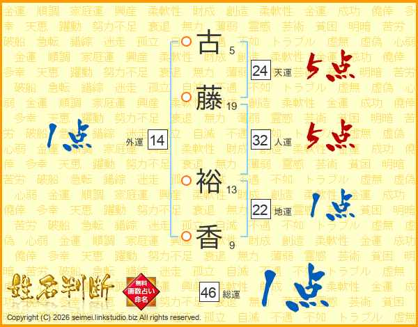 金運 順調 家庭運 興産 柔軟性 財成 創造