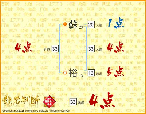 蘇裕さんの総運は33画の4点!