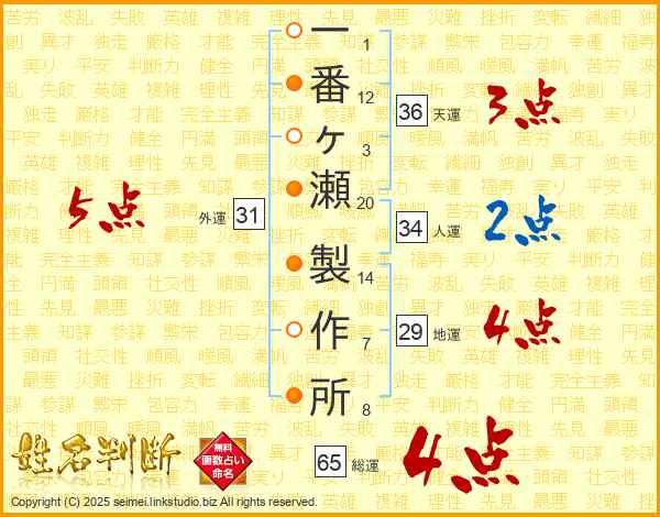 一番ヶ瀬製作所さんの人運は34画の2点!
