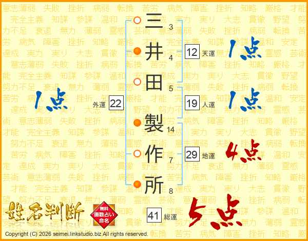 三(3画)井(4画)田(5画) 製(14画)作(7画)所(8画)
