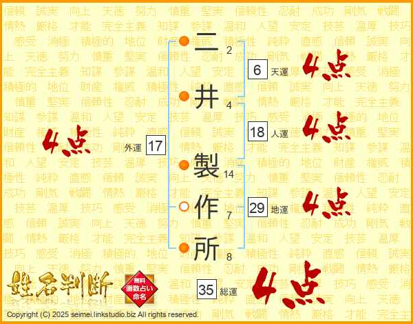 二(2画)井(4画) 製(14画)作(7画)所(8画)