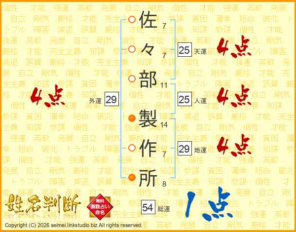 佐々部製作所さんの人運は25画の4点!